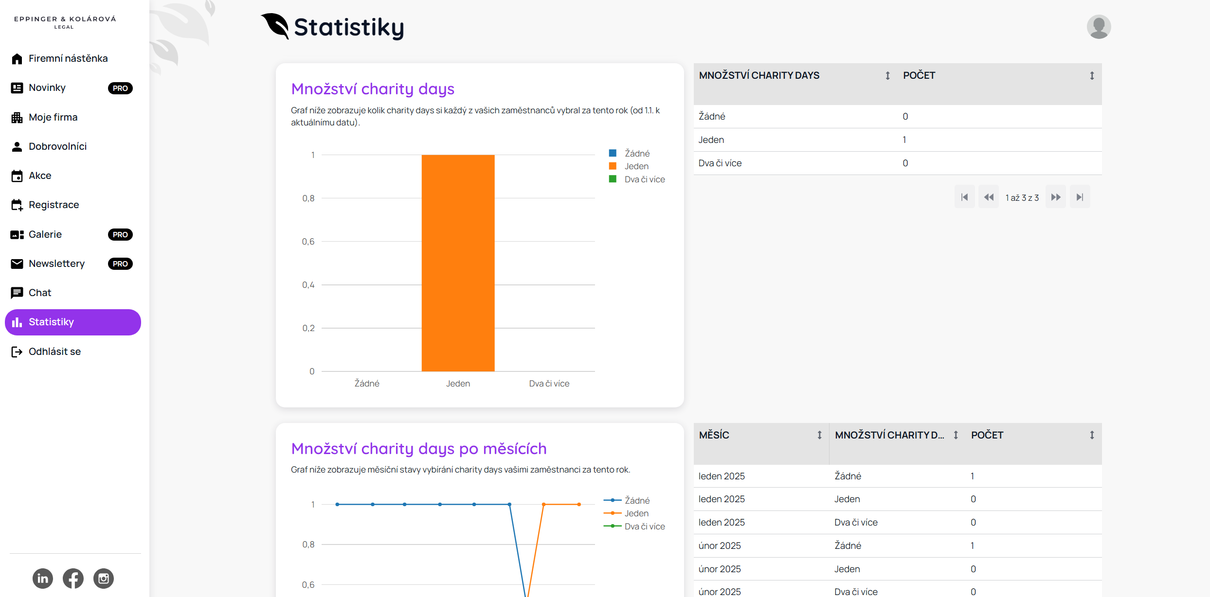 Ve statistikách rychle uvidíte například počet zapojených zaměstnanců, typy poskytnuté pomoci, počet podpořených neziskovek, i konkrétní příběhy a dopady na komunitu.