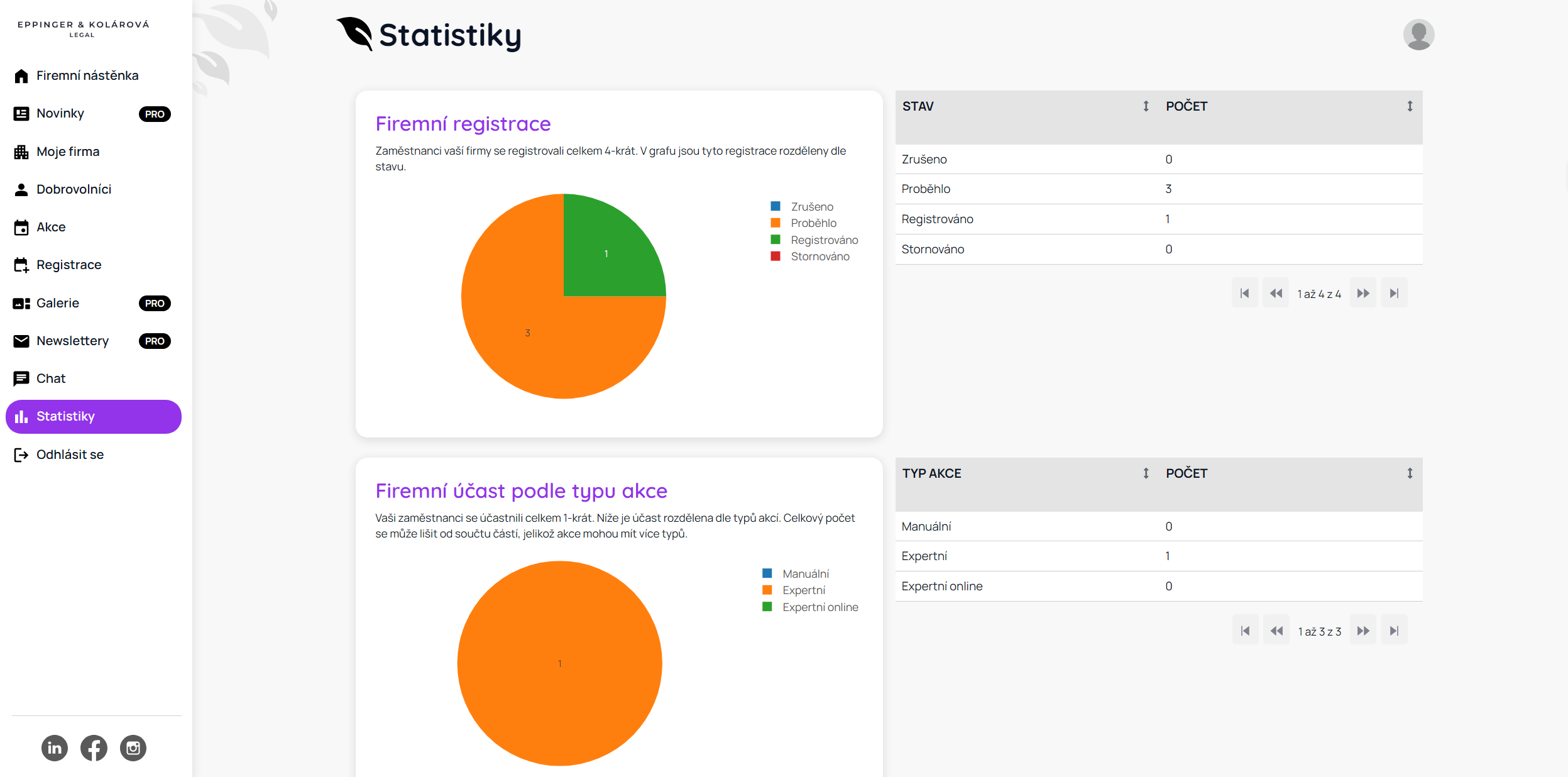 Portál Impaktio umožňuje sledovat zapojení vašich dobrovolníků. Data jsou snadno dostupná a slouží jako měřitelná část vaší firemní CSR (společenské odpovědnosti) a jako zdroj pro řadu firemních reportů.