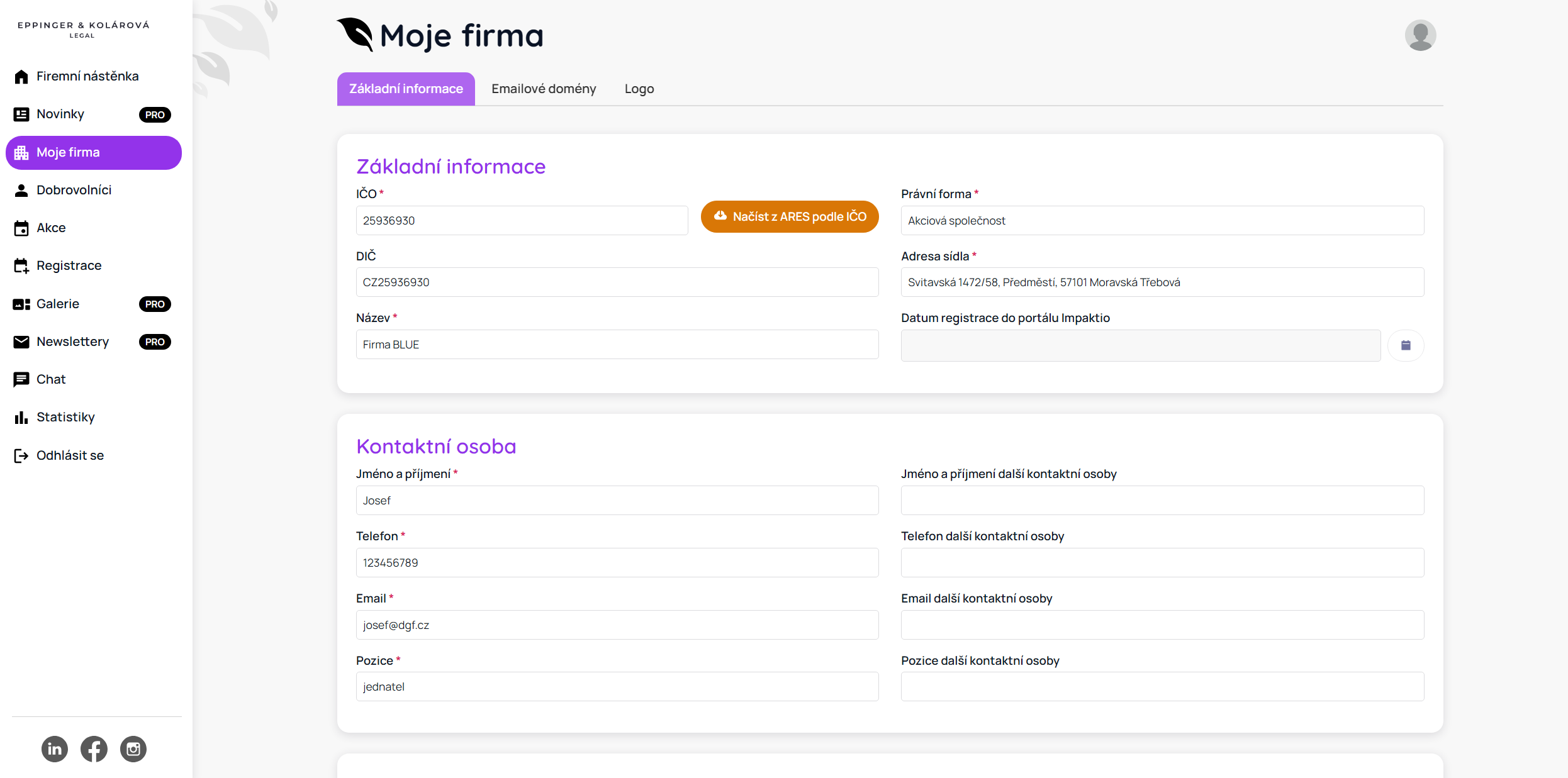 DEMO portálu Impaktio