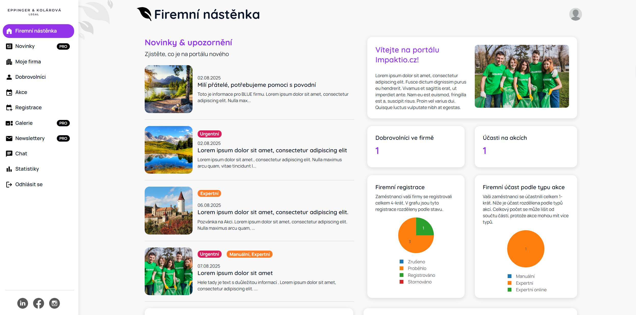 - S Impaktio získáte vlastní firemní profil s personalizovanou firemní identitou včetně vašich barev a loga.